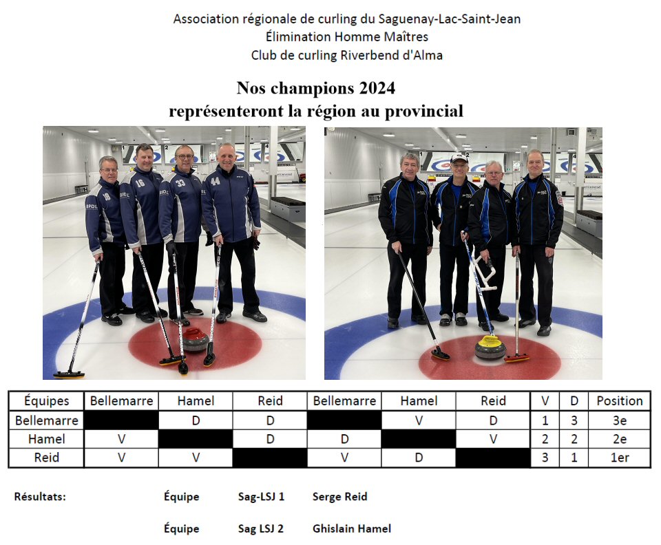 L'équipe de Ghyslain Hamel, composé de Daniel Côté, Marc Tremblay et Remi Simard a remporté le finale régionale des Maîtres 2020,